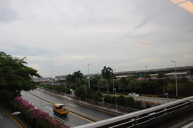 私たちのフライトは予定よりちょっと早めに到着しました。なので、時間にも少し余裕がありました。ターミナル2へ行くにはターミナル間を結ぶ電車、スカイトレインに乗ります。電車の乗り場へ向かって歩きます。